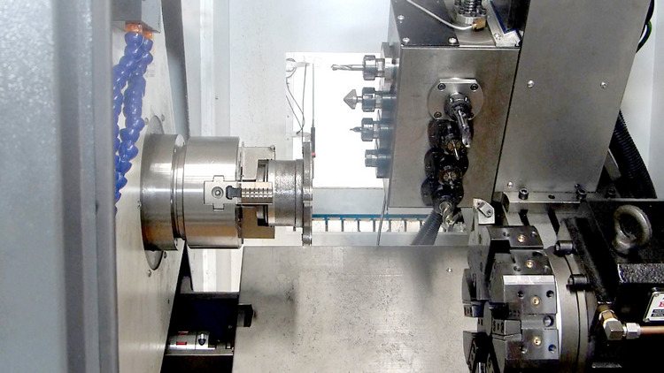 車銑復合機床是一種可以實現(xiàn)車削/銑削能夠進行旋轉工件操作(車削)和旋轉工具操作,例如銑削和交叉鉆孔。該機器通??梢宰R別為水平或垂直車床,在一些或所有工具位置上可以使用用于銑削和鉆孔的主軸。
